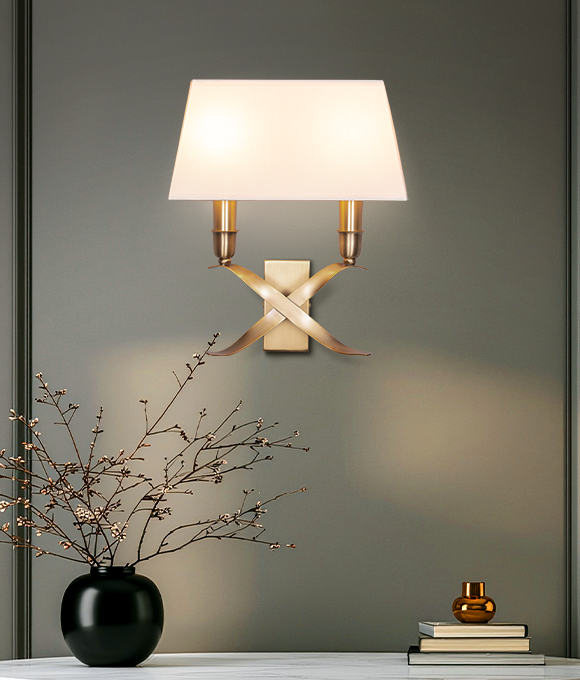 Opaline Crest (Gold, White) 2 Head Frosted Glass Wall Light
