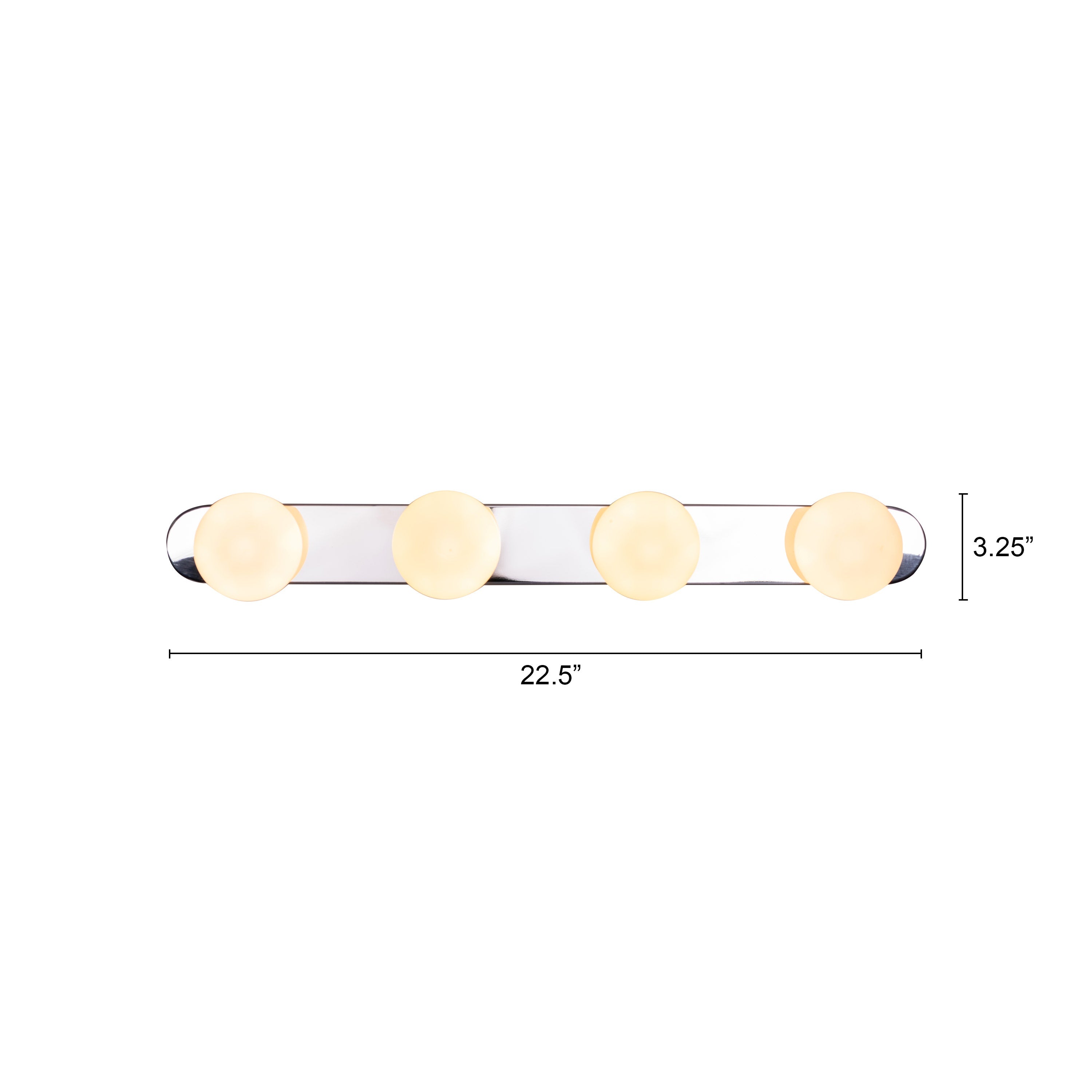 Milky white glass globes arranged artistically on a metal wall plate in a chrome finish give this vanity light the perfect glow it needs to give you absolutely perfect illumination. Ideal for use in vanity rooms and atop mirrors anywhere in your home, this vanity light brings an unparalleled swash of class and sophistication to any room it adorns!