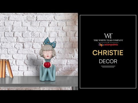 Be inspired by the serenity in this little lady's tranquil expression and let the calmness of the blue shades wash over your spaces. The redness of the apple in her hands offers a refreshing pop of colour in this piece, making it instantly adorable!