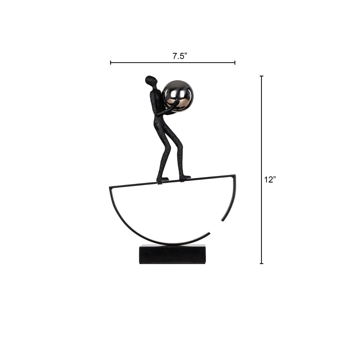 Excess Baggage is another addition to our philosophical sculptures and artifacts. Set on a marble base, a slender human figurine in black carries a metal orb, giving a glimpse into the day-to-day rigours of life. The figurine is crafted in the flexuous nature of resin, thus making the detailing of this resin home decor life-like. Choose this black beauty for your monochromatic interiors to create a cohesive look. Browse through our wide range of black home decor items for more.