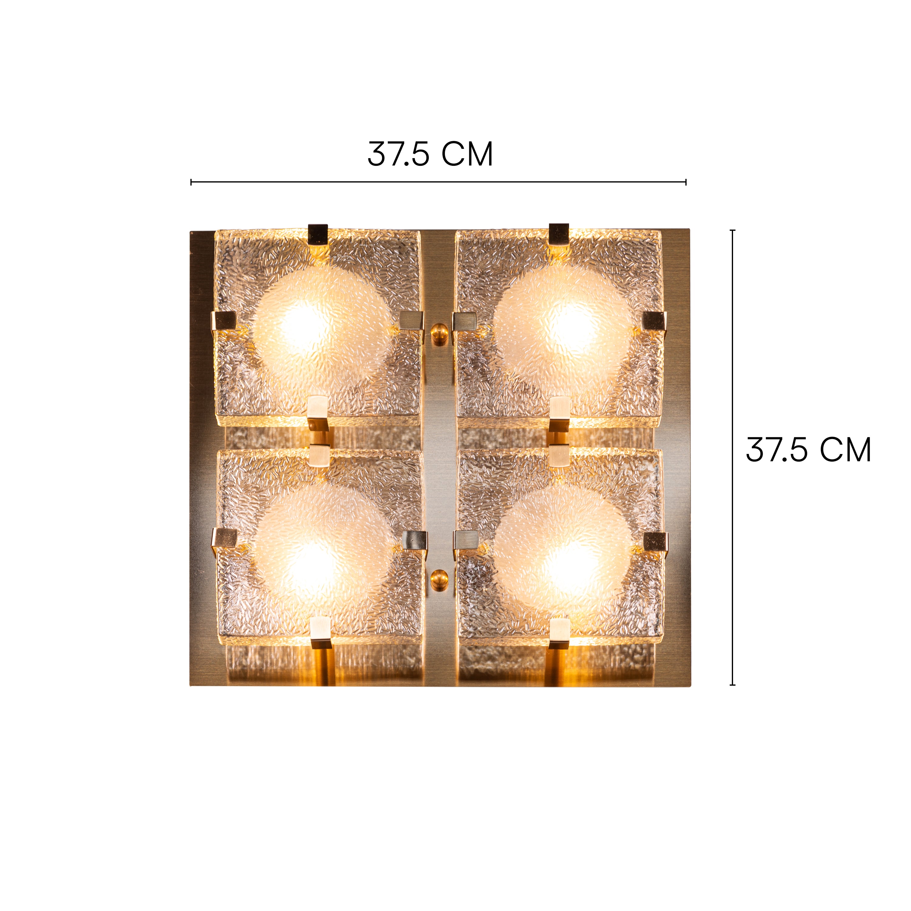 Width: 3 cm (1.2") - Product material: Metal Frame and Ceiling Plate in Gold Finish With Clear Textured External Glass and Internal Frosted Glass Diffuser