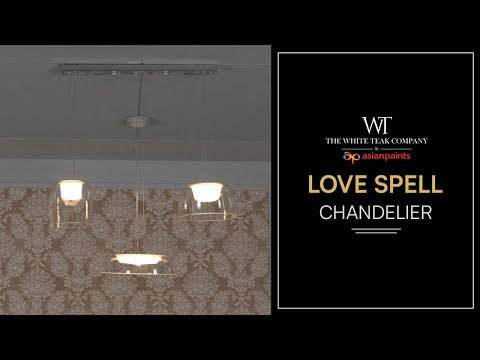Effortlessly charming, our Love Spell Chandelier is an experiment in shapes. Three clear glass jars in varying sizes and shapes combined with a metal in chrome finish come together to create a visually appealing fixture. Crafted with crystal clear molten glass poured over jars of different sizes to get the perfect shape, this unique glass chandelier will lend creativity and comfort to your abode. Experience the magic of simplicity and ease of LED lighting with this metal and glass chandelier. This chandelier casts a soft, glare-free glow, making it perfect for kitchen island or breakfast nook.