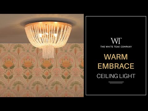 Mesmerizing strings of precision-cut crystal beads cascade from a matte gold ceiling plate to hold a smaller golden metal disk at the bottom in a warm and cosy embrace, giving this ceiling light an ethereal aura. It's the perfect piece for living rooms, dining areas, and almost any other space you can think of!